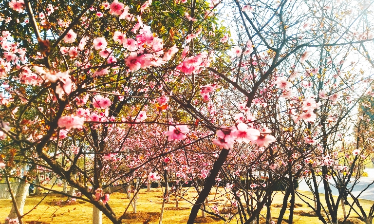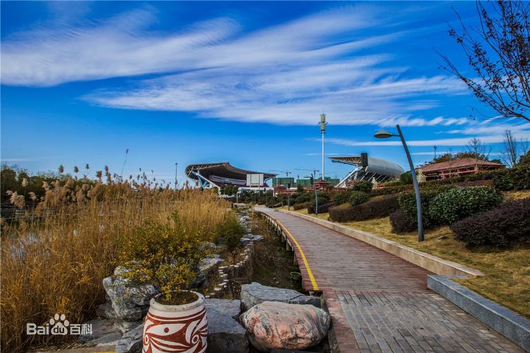 荆门生态运动公园以滨水景观带为主景的南北轴线水生植物景观带,沿象山大道一侧分布的植物科运动公园鸟瞰普宣教区、特色植物感受区、广场造型植物展示区和水生植物观赏区。其中,植物科普宣教区位于体育场东北侧,占地29800平方米。该区景观功能便于青少年开展活动,同时兼顾植物科普教育。景观通过设置动感广场、交谊舞广场、咖啡厅、健身走廊等设施,为青年户外运动提供了方便的场所。植物塑造采用疏密有致的空间对比,密林与疏林交错呼应,广场、小品建筑、健身设施穿插其中,形成一处安静、休闲、浪漫、温馨的景观绿地空间。该区分片布置松柏园、竹园、槭树园、本兰园、百草园、木樨园、蔷薇园、栾木园、银杏园、石榴园十个专类园区,着力展示植物在科学研究和植物资源的收集保存方面的科普教育作用,园区内的每个品种都有挂牌,介绍植物的分类、生长习性、栽植技术及经济价值等,加强对青少年的植物学知识普及教育,以寓教于乐的方式让市民充分体验低碳经济带来的轻松惬意。特色植物感受区由中老年活动区、东南安静休憩区、综合球场区、游泳场西入口区组成。该区主要从植物的观赏特征及其营造的园林意境来展示荆门特色的乡土植物,分听涛园、百果园、七彩园、磬香园、春华园、栖凤园、药用园、藤蔓园、风情园、聚友园、叠翠园11个特色游园。