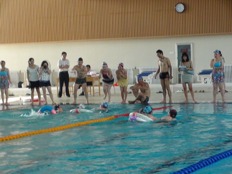 参加的项目有:水中推人 、徒手水中捞物 、叠板接力、水中拔河等等。
