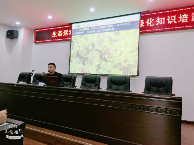 3月22日下午,按照工作计划,园管中心组织全体员工进行园林绿化知识培训,特邀四川国光园林技术部和雪峰经理现场讲授园林植物的病害、虫害及杂草等的生长侵害特点和防治知识。视频和讲解相结合,绿化组和各班组负责人现场提问请教,收到很好的学习效果。 生态运动公园面积大植物多,养护任务繁重,眼下正是防治各种病虫害的关键时期,及时进行相关知识培训,十分重要。