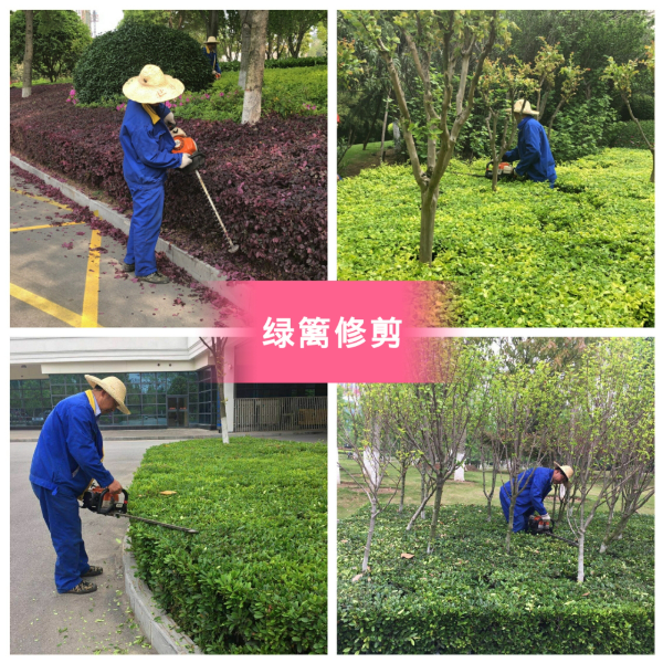 首次绿篱修剪主要针对园区色块和绿化带的蚊母、冬青、金叶女贞、红叶石兰、女贞球、红继木球等植物。