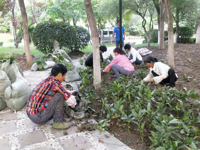之前,园区员工已自行补植草皮1000余平方米,园区各处余下的6000余平方米黄土裸露地,因时间紧迫,为确保补植效果和成活率,正在请专业绿化公司来进行苗木补植,中心员工从各个方面积极配合。