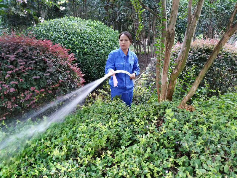 每天清晨6时许,直至傍晚,园区各个片区都有员工们手持水管抢水压抢时间浇水抗旱的身影。园区里有许多植物根须短不耐旱,二三天缺水便会出现打蔫萎黄的现象,如果不及时补水,大量色块、绿化带和树木将会枯萎,严重影响景观效果,使生态遭受破坏。