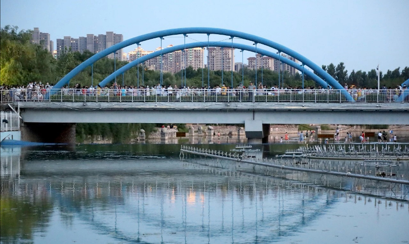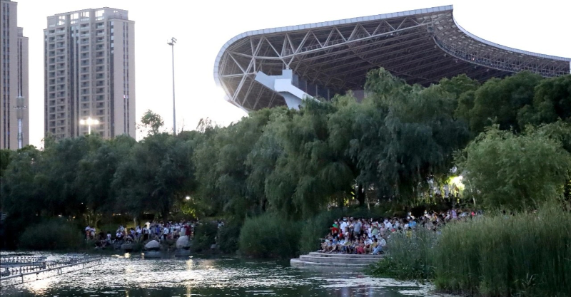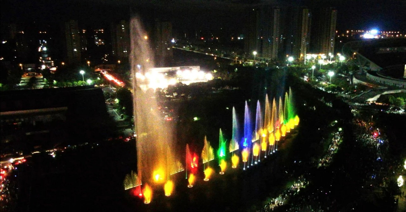 经过升级改造后的生态运动公园音乐喷泉于5月底验收重新开放。升级重启后的音乐喷泉是汇集喷泉、水幕、灯光的综合水舞秀,由10盏太空色灯、1147盏水下彩灯构成,其中喷泉的主喷高度达50米。目前,该喷泉开放时间为每周六(雨天除外)20时至20时30分。