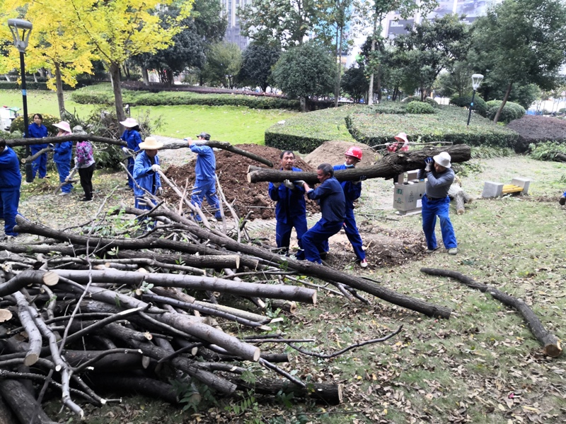 十月秋意浓,生态公园忙。创全国文明城市迎国检复评的大幕刚落,生态运动公园管理中心紧接着展开了全园生产管理繁忙画卷。一是按照全年工作计划,进行第四次绿篱修剪。包括海桐球、黄杨球、石兰球、腊梅、月季、夹竹桃等绿植,以及色块和桩景;二是对红叶李进行截枝;三是移栽桂花苗木,移除部分影响草皮生长的刺槐;四是清理枯枝及河道两岸的黄杏、茅草和芦苇。任务繁重,工作量大。刺槐多超过十年的树龄,移除时常需多人协同搬运。本月已清运出园的树枝、茅草等修剪物已超过十余大卡车。