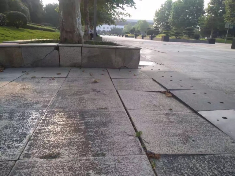 由于建园时间已久,汉通游泳馆西边广场靠近压碑堰路部分有16个花坛因根须过于发达,将花坛及部分雨水沟撑破,还导致部分路面下陷,排水不畅,严重影响环境美化及创城创卫的评审工作。